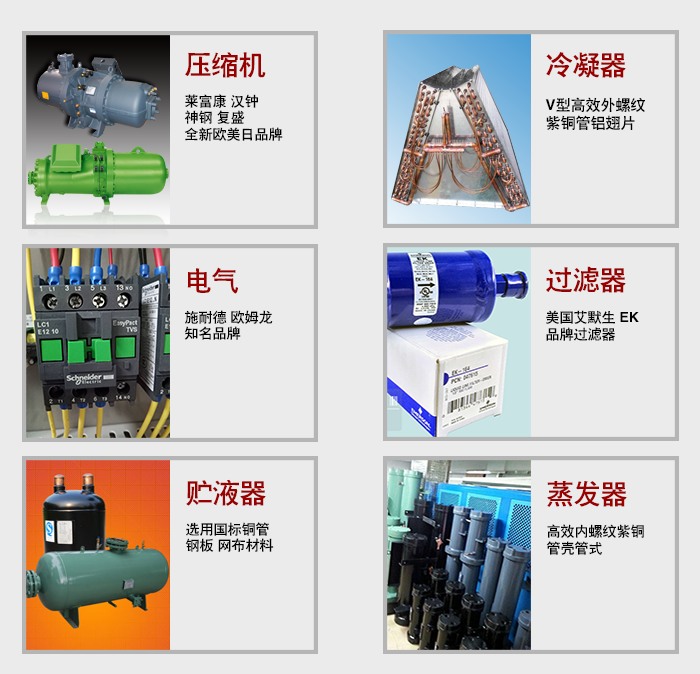 采用意大利萊富康、德國比澤爾、中國臺灣復盛、漢鐘半封閉螺桿壓縮機。